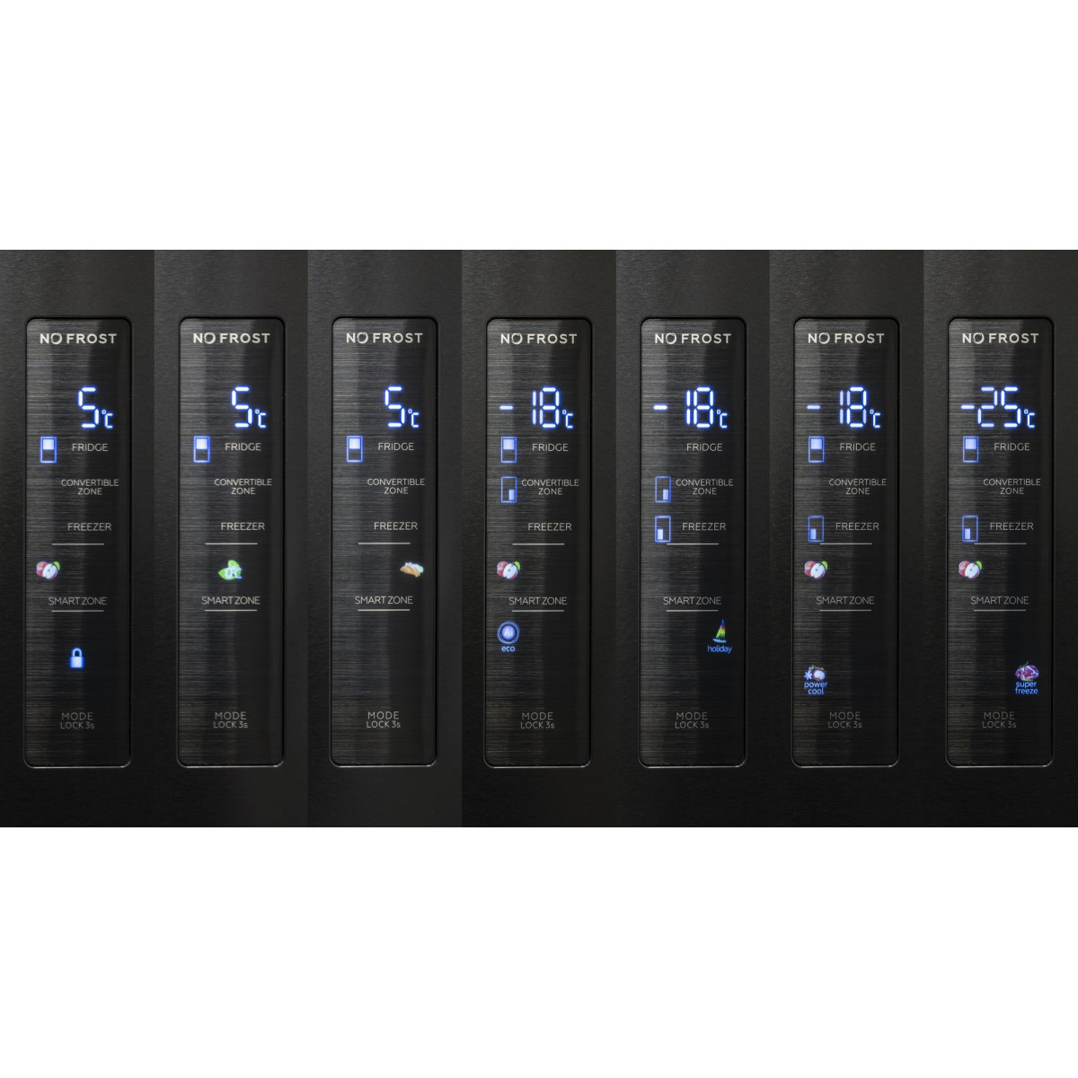 - Smart zóna – umožňuje nastavenie na -1,5 °C, 0 °C alebo 3 °C; ideálna na mäso, ryby a potraviny vyžadujúce nižšie teploty.