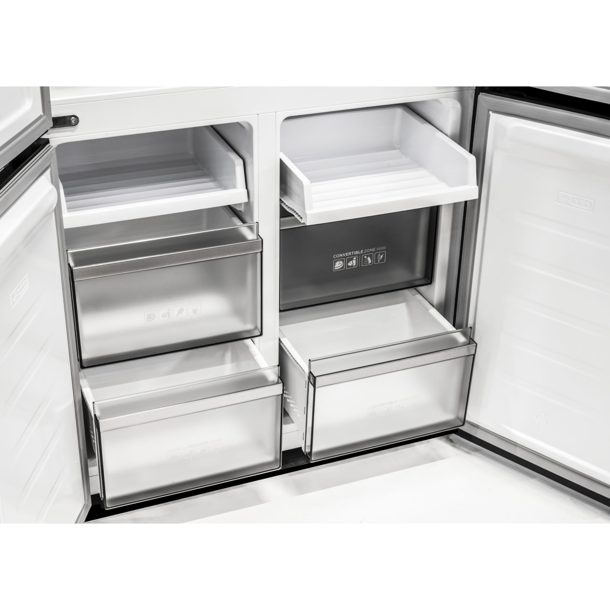 - Skvelá kombinácia priestoru a prehľadnosti – všetko má svoje miesto, bez kompromisov; police z tvrdeného skla, priestranné dverové priehradky a variabilná zóna umožňujú prispôsobiť vnútorné usporiadanie vašim potrebám.