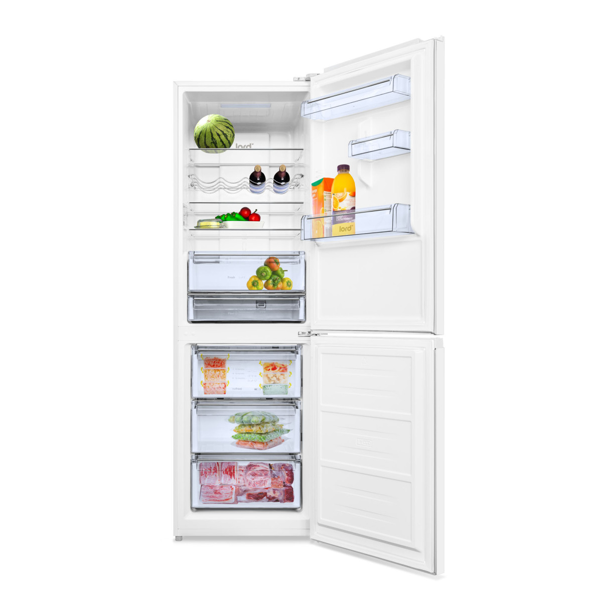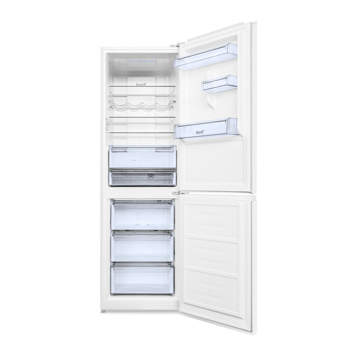 Chladiaca časť chladničky LORD C14, ktorá ponúka funkciu automatického odmrazovania, je rozčlenená na niekoľko zón. Tá s označením Fresh je ideálny pre umiestnenie ovocia a zeleniny. Zóna 0 ° C bola vytvorená pre ryby a mäso. Funkcia Multi-Flow Air Tower zaistí dokonalú cirkuláciu vzduchu a vyrovnávanie teploty v niektorých častiach chladničky. Potraviny môžete umiestniť do celkom troch políc z bezpečnostného skla, pričom dve z nich sú výškovo nastaviteľné. Nechýba ani polička na fľaše a vo dverách chladničky nájdete celkom tri police. U tejto chladničky nájdete integrované držadlo. Nemusíte sa báť nedovretých dverí, akustický alarm vám túto skutočnosť bezodkladne ohlási.