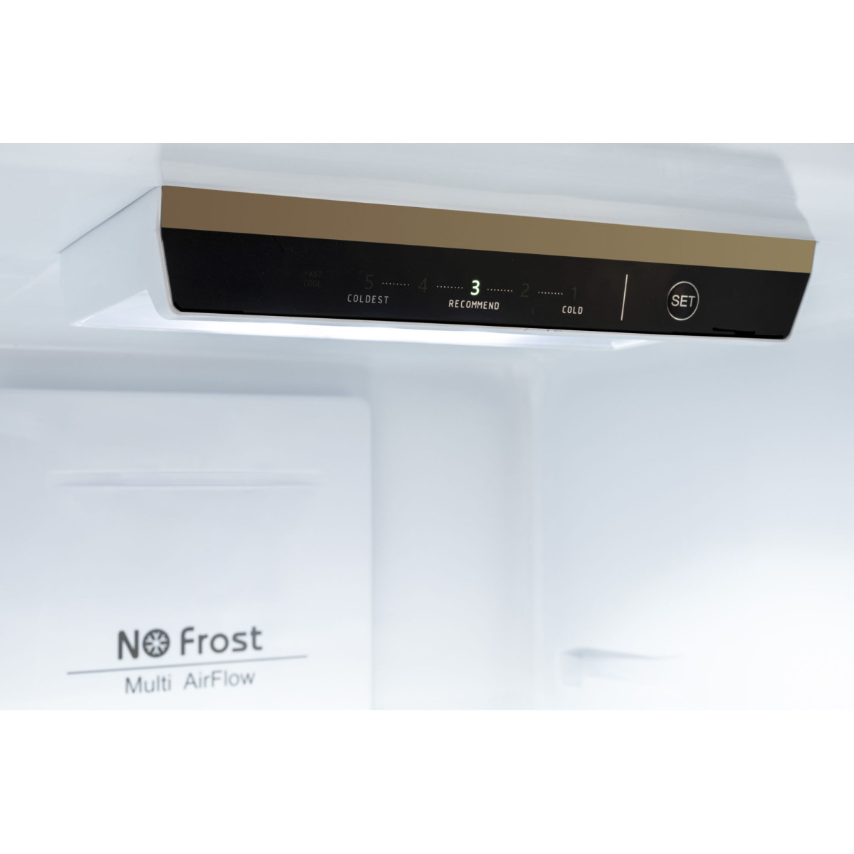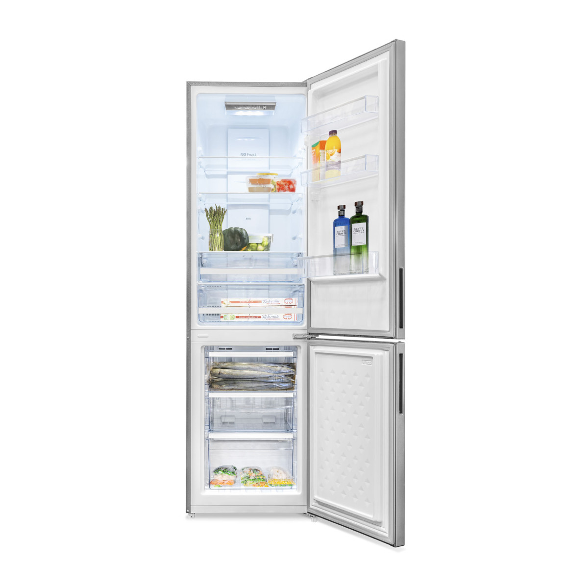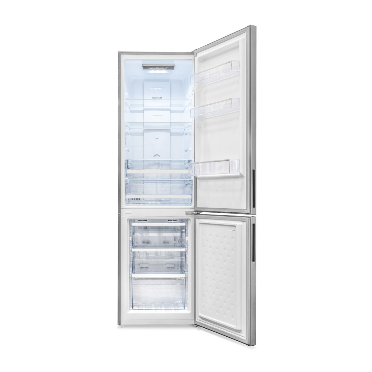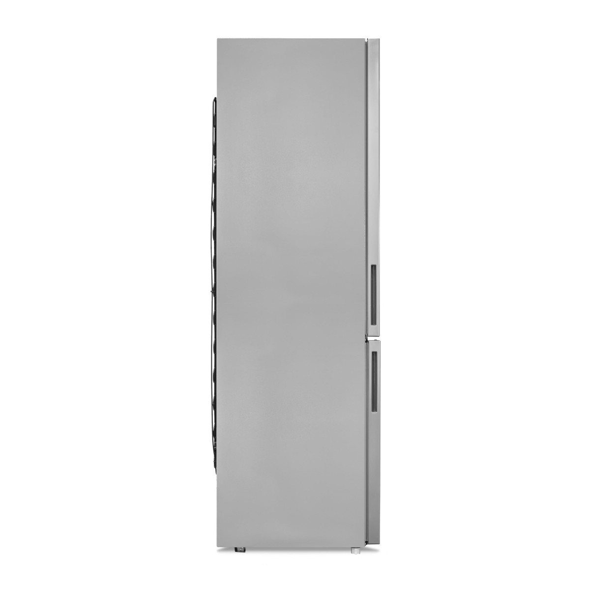 Kombinovaná chladnička, Spotreba el. energie: 140 kWh/rok, Objem celkom: 250 l, Objem chladničky: 180 l, Objem mrazničky: 70 l, Hlučnosť: 39 dB(A) re 1 pW, Klimatická trieda: SN-T (+10°C až +43°C), Automatické odmrazovanie NoFrost, Integrované madlá, Farba dverí: nerezový vzhľad, Farba bokov: šedá, 181,0 cm x 54,0 cm x 59,1 cm