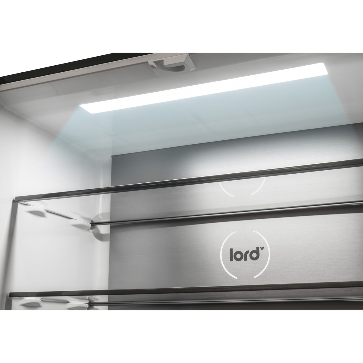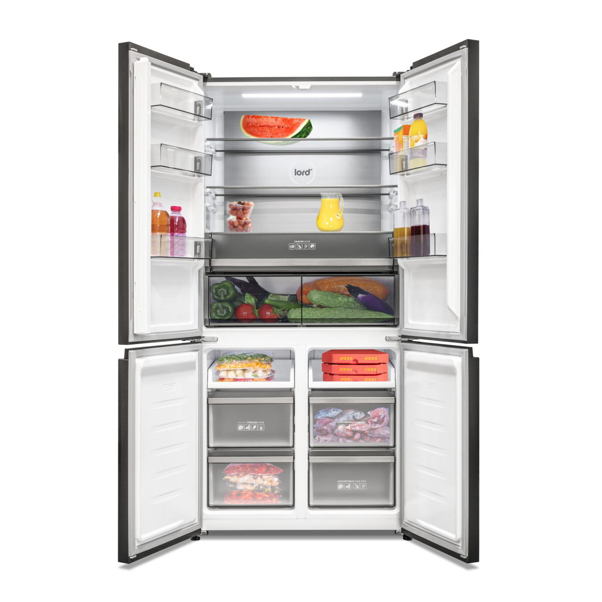 Vynikajúci vzhľad v dizajne čierneho nerezu robí z chladničky LORD C26 štýlový prvok, ktorý pozdvihne interiér každej kuchyne. S celkovým objemom 505 litrov ponúka dostatok priestoru pre všetky vaše potraviny. Chladiaca časť s objemom 349 litrov, prehľadné usporiadanie políc z bezpečnostného skla a 6 dverových políc najlepšie poslúži na skladovanie čerstvých surovín. Mraziaca časť s objemom 76 litrov disponuje tromi praktickými zásuvkami, ktoré uľahčujú organizáciu. Ďalších 80 litrov variabilného priestoru možno flexibilne prispôsobiť podľa vašich potrieb – od chladenia až po mrazenie vďaka nastaviteľnému rozsahu teplôt od -20°C do 5°C.
