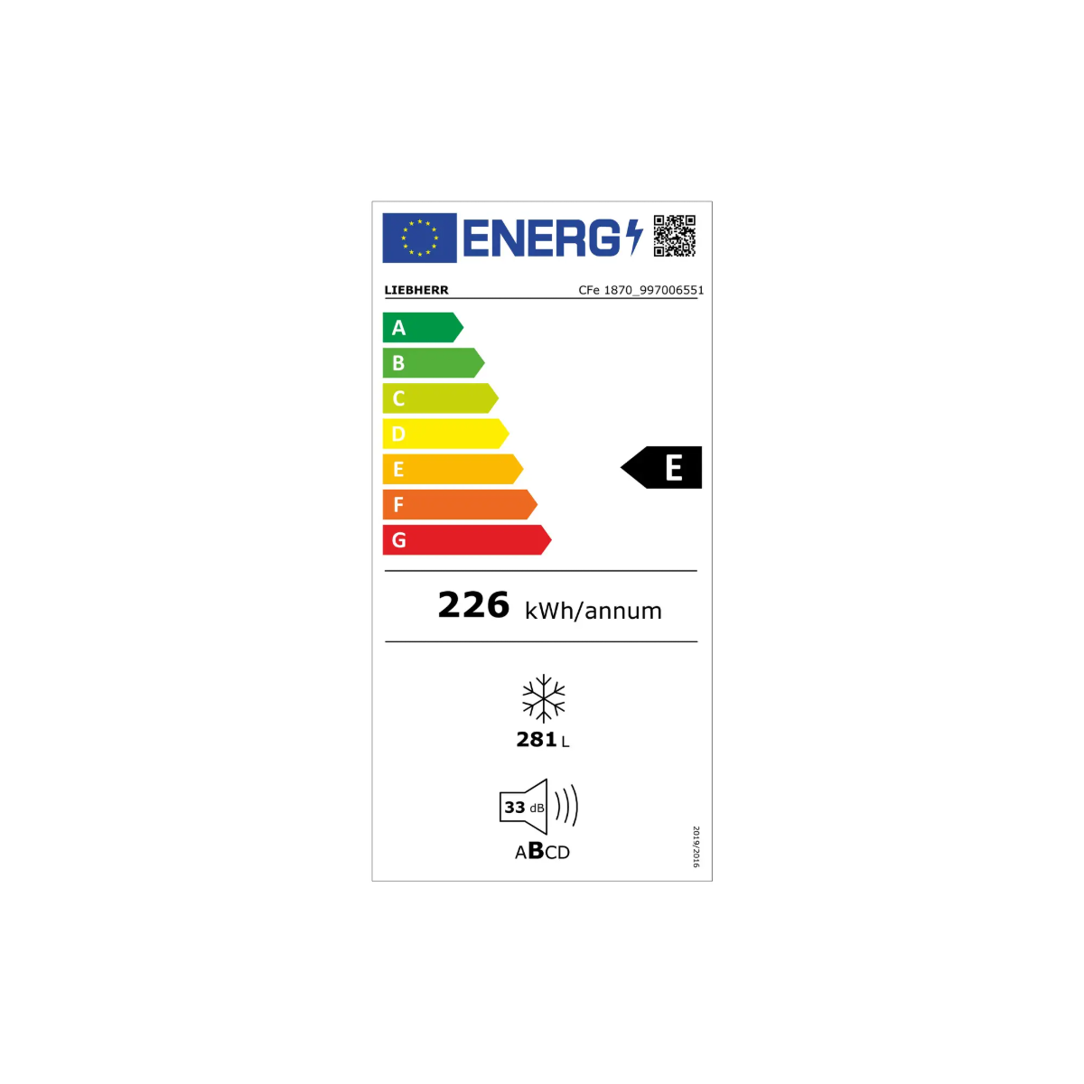 Liebherr CFe 1870 Pure je spoľahlivá voľne stojaca truhlicová mraznička s objemom 281 l, ktorá disponuje funkciami SmartFrost, StopFrost, SuperFrost, LED osvetlením a možnosťou umiestnenia do nevyhrievaných priestorov. Vďaka nízkej spotrebe energie (E trieda), tichému chodu a dlhodobo odolnej autonómii je ideálna voľba pre každodenné a dlhodobé skladovanie potravín s minimálnou starostlivosťou.
