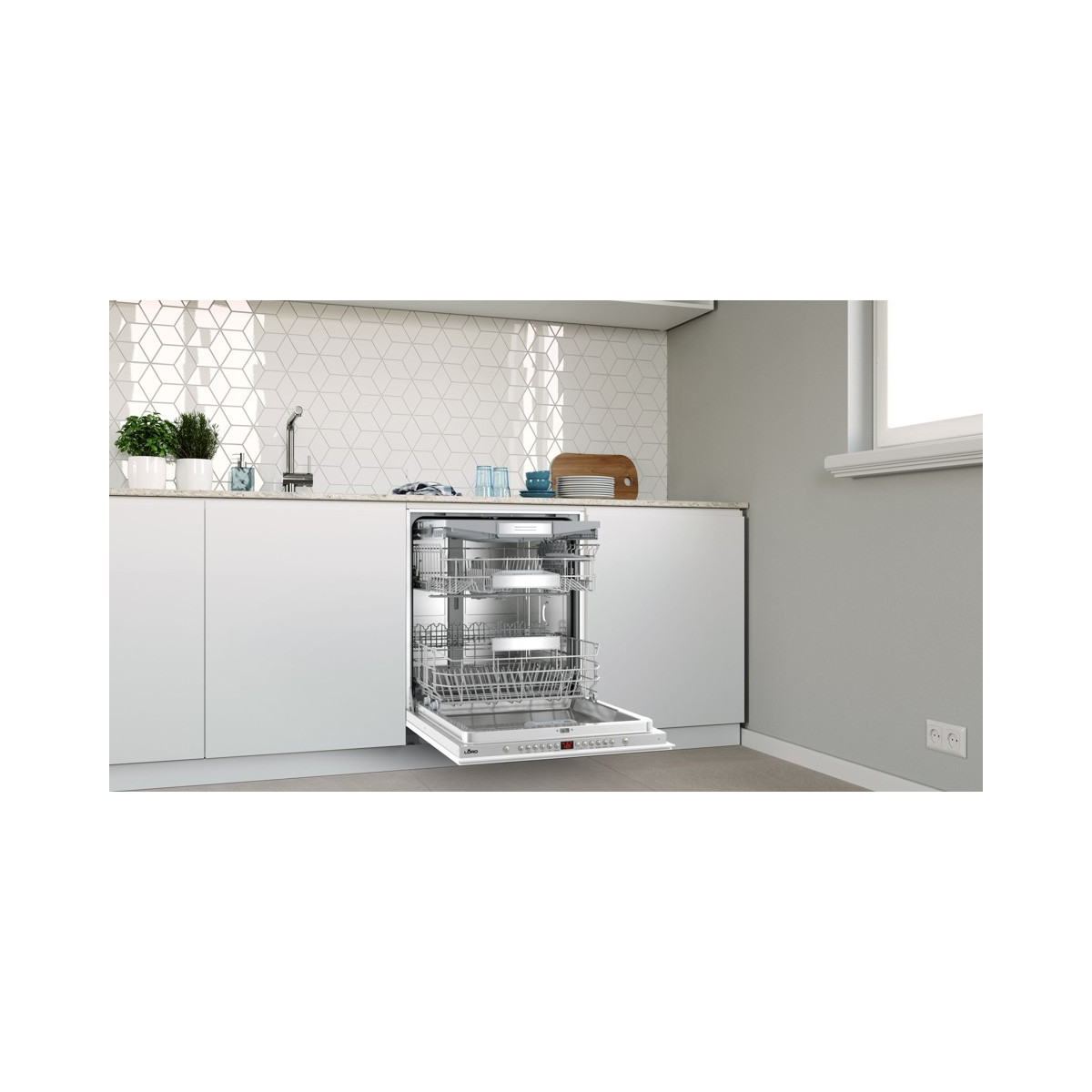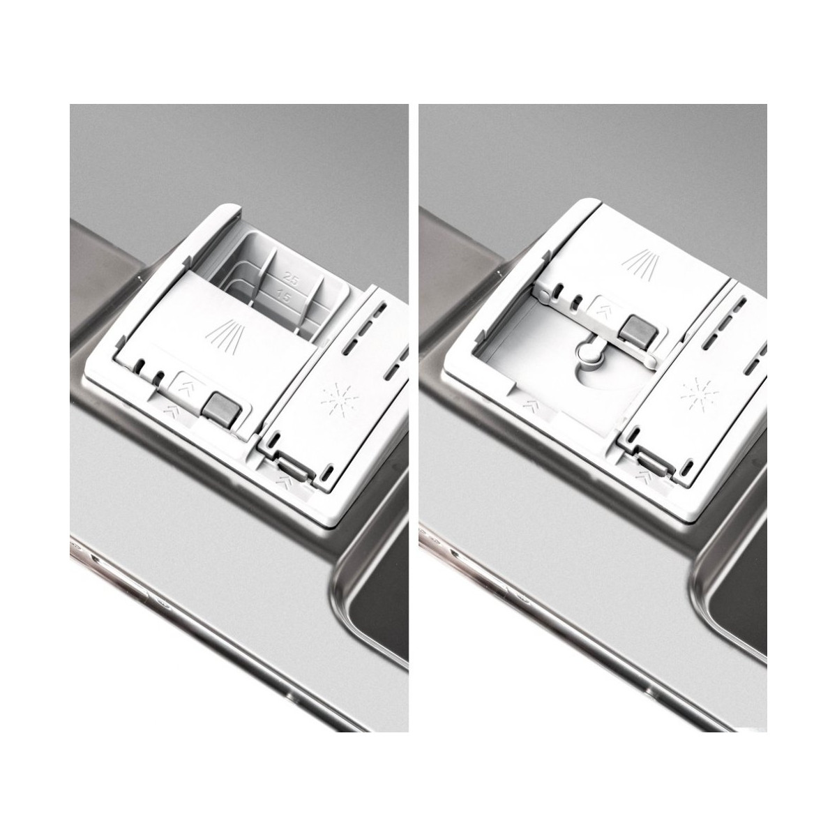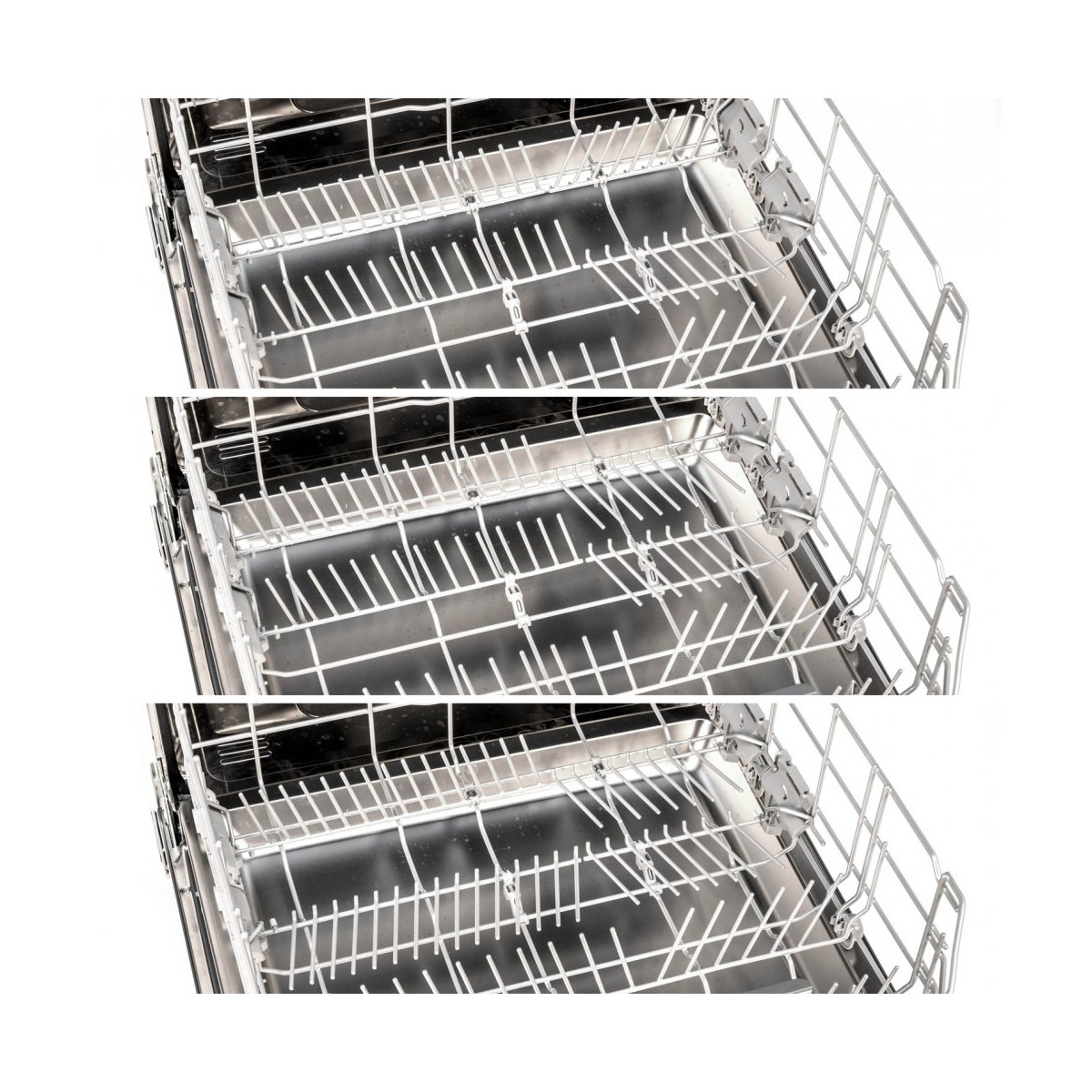 Vnútri umývačky je miesto pre 14 obedových súprav. Riad sa vkladá do 3 úrovní. Vďaka príborovej zásuvke budú vaše príbory vždy dokonale umyté, navyše v umývačke zostane viac miesta pre väčšie riady. Začiatok umývanie si môžete odložiť až o 24 hodín. Funkcia AquaStop, ktorú umývačka disponuje, dokáže ochrániť vašu domácnosť pred vytopením v prípade poruchy spotrebiča. Hlučnosť umývačky je len 44 dB, a tak sa nemusíte báť nadmerného hluku.