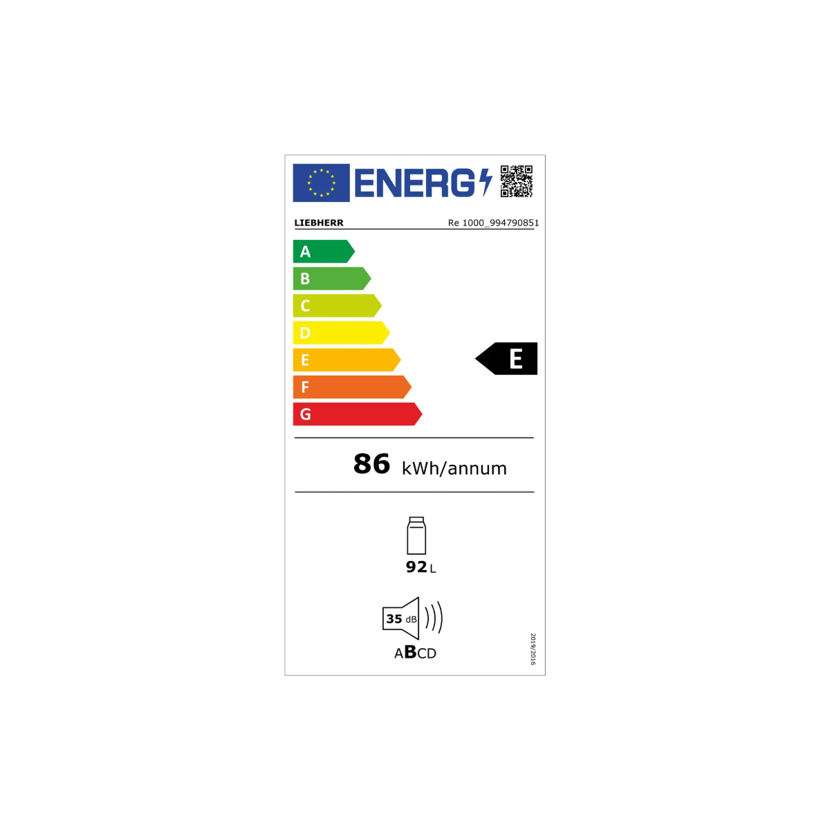 Liebherr Re 1000 Pure je kompaktná podstolová chladnička, ideálna pre menšie domácnosti alebo ako doplnkový spotrebič.