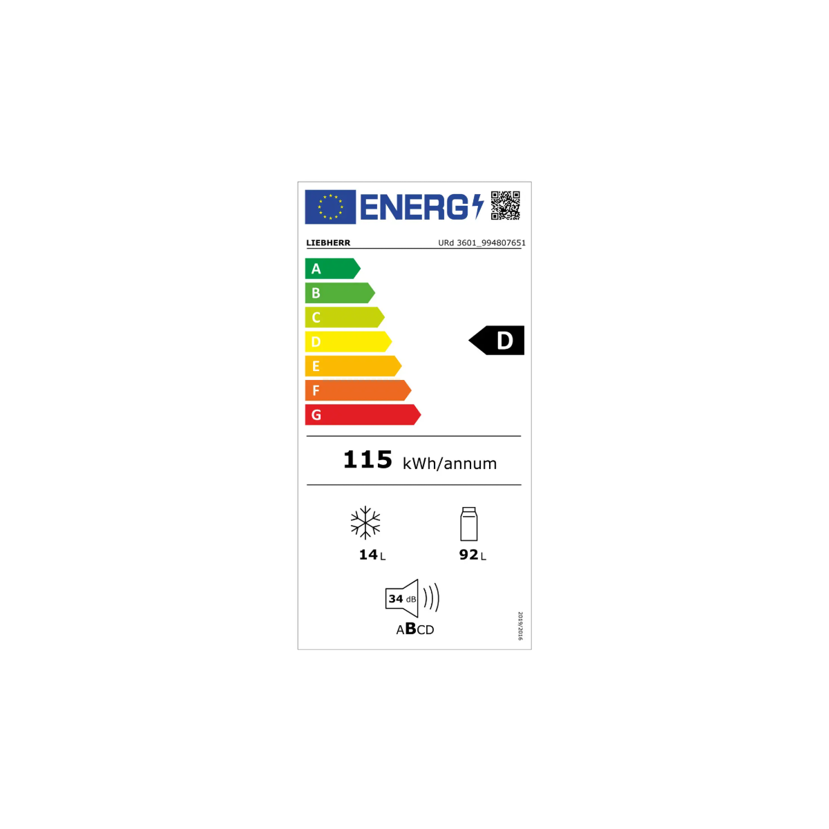 Chladnička Liebherr URd 3601 Pure je kompaktný vstavaný model určený na inštaláciu pod pracovnú dosku, ideálny pre menšie kuchyne, kancelárie alebo ako doplnková chladnička.