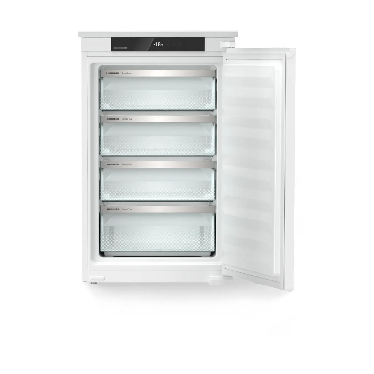 Liebherr IFSd 3904 Pure NoFrost je kompaktná, vstavaná mraznička s objemom 101 l, ktorá vyniká hygienickým chodom (SmartFrost), veľmi nízkou hlučnosťou a intuitívnym ovládaním prostredníctvom dotykového displeja. Vďaka funkciám ako SuperFrost, VarioSpace a možnosti SmartDeviceBox integrácie je ideálna pre moderné kuchyne vyžadujúce komfort, úspornosť a elegantné prevedenie.