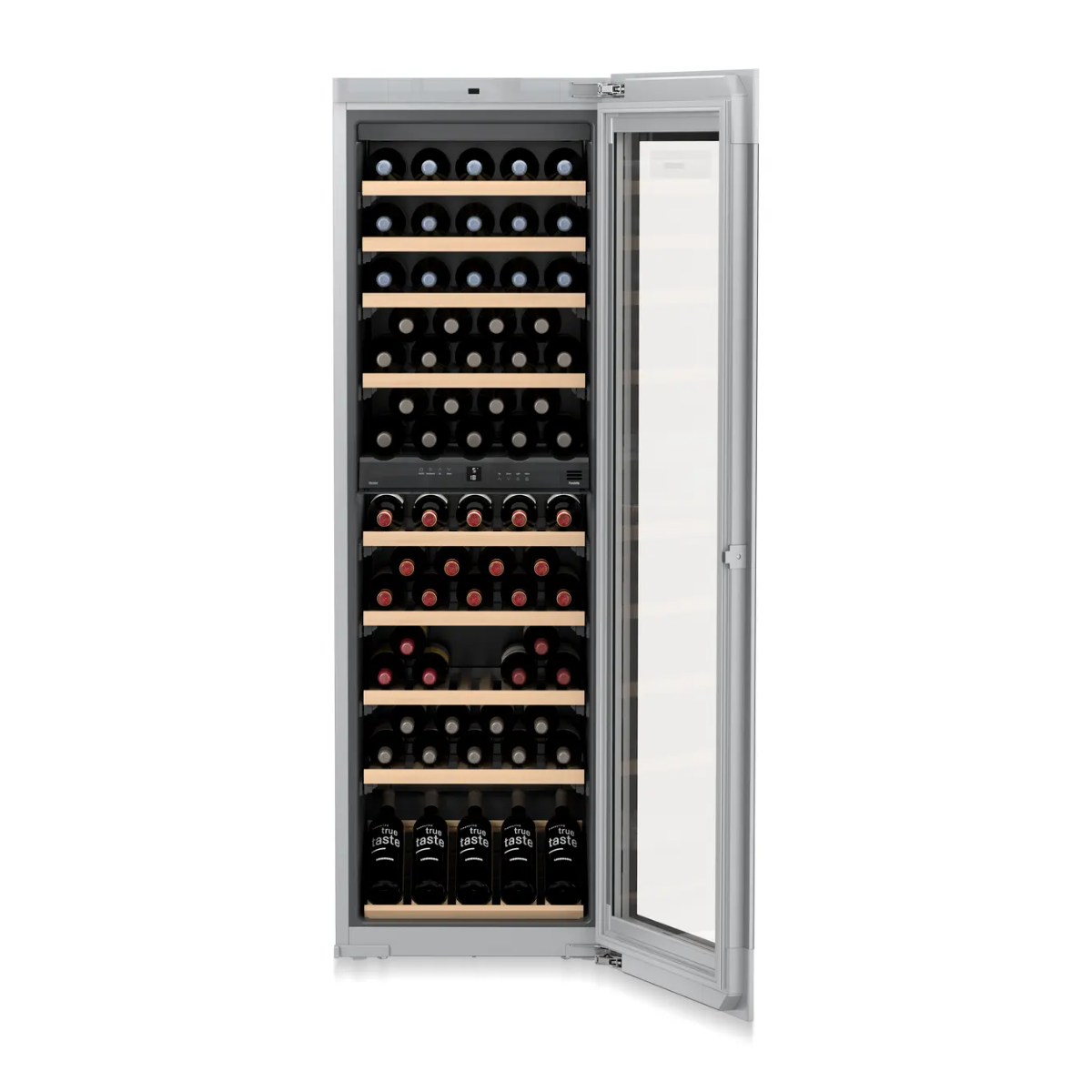 Liebherr EWTgb 3583 Vinidor je výnimočný vstavaný dvojzónový vinotékový chladič s kapacitou 83 fliaš, LED osvetlením, „handle-less“ dizajnom (TipOpen), pokročilou ochranou vína (UV, filter, alarm), tichým chodom a flexibilnými bezpečnostnými prvkami. Ideálny spojenec pre fajnšmekrov, ktorí vyžadujú spojenie výkonu, komfortu a estetiky vo svojej domácnosti.